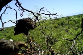 El águila coronada (Buteogallus coronatus) es una especie catalogada en peligro de extinción desde 2004. Su población en estado silvestre en todo el territorio argentino se calcula en no más de 1.500 ejemplares. La desaparición de su hábitat, la cacería y captura fueron los factores principales para arrastrar a esta especie casi a su desaparición. Hoy, las tareas de educación y concientización de parte de los guardaparques a los pobladores que viven en las zonas consideradas el hábitat para estos animales rindió sus frutos. Estos pobladores, que en un momento fueron competencia para la especie, hoy son aliados de la Secretaría de Ambiente y Ordenamiento Territorial en la conservación de esta rapaz. Así fue que la familia Jofré, de puesteros de la zona, encontró a este pichón que había caído del nido y lo entregó a los guardaparques de la Reserva Bosque Telteca y, en simultáneo, la familia Mayorga identificó un nido que reunía las condiciones para alojar al pichón perdido. En un operativo sin precedentes en el país, el personal de Fauna y los guardaparques de la reserva, junto a personal de Fundación Cullunche, Ecoparque de Buenos Aires y Fundación Caburé-í, utilizaron los momentos en los que las aves dejaban el nido en horario de cacería para desinfectar y dejar el espacio para el pichón a adoptar en condiciones, ya que el anterior había muerto de anemia, por la cantidad de insectos y ácaros que habitaban el nido. Se colocó el pichón con comida en el nido y se lo monitoreó. Luego se constató que la adopción se había desarrollado con éxito, al documentar que los padres adoptivos comenzaron a alimentar con regularidad al pichón. La Dirección de Recursos Naturales Renovables recuerda que la fauna silvestre de la provincia de Mendoza está protegida por la Ley Nacional de Fauna 22421; la Ley Provincial de adhesión 4602, su modificatoria la Ley 7308 y el Decreto Reglamentario 1890/05. Quienes deseen brindar información sobre ejemplares de fauna silvestre heridos o denunciar casos de caza o tenencia ilegal pueden hacerlo a través del portal de Ambiente. Pueden comunicarse telefónicamente a la Dirección de Recursos Naturales Renovables a los teléfonos 4252090 y 4257065, de 8 a 13, de lunes a viernes o al 911 (Policía de Seguridad Rural de Mendoza). La captura, tenencia ilegal y comercialización de fauna están penadas por la legislación, como también la destrucción de sus hábitats. El presunto infractor podría quedar a disposición de la Justicia y podrá ser reprimido con penas de prisión. Además, las multas por este tipo de infracciones alcanzan valores de hasta $100 mil por ejemplar, según la gravedad del hecho.
