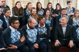 En ese sentido, el presidente agradeció el esfuerzo de los deportistas en la competición, realizada entre el 26 de julio y el 11 de agosto en Lima y que le permitió a Argentina realizar su mejor producción de medallas fuera del país. "Si vos trabajás todos los días comprometido, con seriedad, poniendo el corazón, las cosas llegan", sostuvo. El equipo que representó al país estuvo compuesto por 526 atletas que lograron 32 medallas de oro, 35 de plata y 34 de bronce. En el torneo realizado en tierras peruanas, Argentina logró medallas de oro en canotaje (4), natación femenina (4), remo masculino (3), fútbol masculino, básquetbol masculino, handball masculino, boxeo femenino, ruta masculino, esquí náutico femenino, patinaje artístico masculino, rugby 7 masculino, sóftbol masculino y taekwondo masculino. Además la delegación albiceleste consiguió medallas en tenis individual femenino, rifle de aire mixto, vóley masculino, vela masculino, hockey femenino y masculino, pelota de cuero masculino, pelota de goma femenino y masculino, equipos mixto arco compuesto y bote mixto 3 personas. Los Juegos Panamericanos de Lima convocaron a 6.700 deportistas de 41 países, que compitieron en 39 deportes y 61 disciplinas.