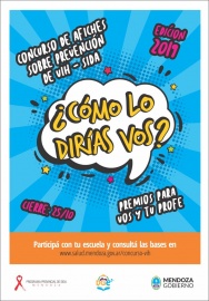 Alumnos de 7º grado de educación primaria, educación secundaria, especial, CENS y CEBJA de la Provincia podrán participar en la 21ª edición del Concurso de Afiches sobre Prevención del VIH-Sida, organizado por el Ministerio de Salud, Desarrollo Social y Deportes y la Dirección General de Escuelas. Los trabajos se clasifican en dos categorías: 1. Alumnos de 7º grado, 1º y 2º año de nivel secundario, CEBJA y Educación Especial y 2. Estudiantes de 3º, 4º y 5º año de nivel secundario y CENS. El jurado premiará la originalidad y la coherencia conceptual volcadas por los alumnos en los afiches. En 2018, el certamen tuvo la edición con mayor convocatoria de toda su historia. Se presentaron 746 afiches de 136 escuelas de 16 departamentos, cifras que se intentan multiplicar para que más estudiantes investiguen el tema y elaboren mensajes o propuestas preventivas. Desde el Programa Provincial de Sida afirmaron que el incremento del VIH-Sida y de otras enfermedades de transmisión sexual en los últimos años induce a pensar que ha disminuido el uso del preservativo, por lo que se torna necesario reforzar la importancia de su utilización, sobre todo en las poblaciones jóvenes. Este año, el Ministerio de Salud incorporó una página web donde los participantes podrán encontrar las bases del concurso. Los trabajos se recibirán hasta el viernes 25 de octubre, de 8.30 a 13, en la sede del Departamento de Educación para la Salud, Morón 22, Ciudad. Para consultas, comunicarse al 261 4293550 o al 261 4202624. Los premios El primer premio consiste en una orden de compra de $5.000 para cada estudiante ganador y una de $1.500 para el docente orientador. En tanto, el segundo premio incluye una orden de compra de $3.000 para cada integrante y una de $ 1.500 para el docente orientador. VIH hoy Desde hace tiempo, el VIH-Sida se ha transformado en una enfermedad crónica. Actualmente, hay unas 5.000 personas con infección por VIH en Mendoza, quienes con el tratamiento correspondiente pueden llevar una vida normal. Asimismo, existen test rápidos de detección, que se realizan en los hospitales y en los Centros de Prevención, Asesoramiento y Testeo (CEPAT), donde se puede obtener el resultado del análisis en menos de una hora.