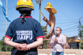 El acto contó con la presencia del intendente Matias Stevanato, el presidente de la Asociación de Bomberos Voluntarios, Facundo López y el equipo de bomberos y bomberas del departamento.   “Es un monumento histórico y significativo para la comunidad. Representa el valor, la responsabilidad y el compromiso de nuestro cuerpo de bomberos voluntarios que están siempre a disposición para cuidar a los vecinos y vecinas de Maipú”, destacó el intendente, Matías Stevanato.   Por su parte, Facundo López agradeció la iniciativa y recalcó "es gratificante recibir este homenaje y que se le dé la importancia que merece el trabajo arduo que realiza nuestro Cuerpo cotidianamente. Quiero destacar el acompañamiento constante y recíproco entre el cuerpo de Bomberos, el municipio y los vecinos". La puesta en valor de la rotonda, significó la restauración y adecuación del monumento que abarcó también la reconstrucción del cordón, hormigonado y pintura.   Cabe destacar que la comuna, en conjunto con el cuerpo de Bomberos Voluntarios de Maipú, están llevando a cabo una campaña de concientización para evitar incendios, brindando información y consejos prácticos sobre cómo actuar frente a una situación de incendio.    *Un poco de historia* El monumento a los bomberos fue esculpido en 1998 por la destacada escultora maipucina, Rosa Argelia Caligiore. Fue realizado en hormigón armado y patinado con una altura de 5 metros desde la base. El mismo representa a un bombero que se encuentra con su mano izquierda extendida ofreciendo su ayuda solidaria hacia la comunidad.