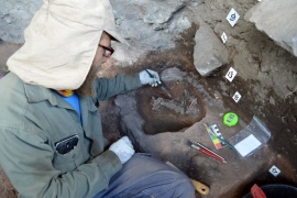 Los científicos trabajan en el sitio desde el 10 de diciembre, cuando llegaron al lugar a reabrir la excavación de los años anteriores. Primero despejaron el área de vegetación y montaron la cuadrícula para empezar a excavar. A unos días de cerrarla y dar por terminada la campaña, se vieron asombrados por el descubrimiento, que estaba totalmente fuera de sus predicciones. ¿Cómo se produjo el hallazgo? “Estábamos buscando el nivel estéril de la excavación, porque ya nos encontrábamos a la misma profundidad del entierro del 2015, en el que hallamos al otro niño, cuando apareció un rasgo particular: un círculo bien definido que tenía sedimento carbonoso, muy diferente del resto de la planta, que tiene un sedimento arcilloso rojizo. Se pensó en un principio que era parte de una estructura de combustión (un fogón) y se empezó a trabajar de otra manera que en el resto de la cuadrícula de la excavación”, detalló Gasco. Y continuó: “Se alcanzaron a extraer un par de centímetros con un pincel y aparecieron allí fragmentos de la mandíbula: eso nos dio la pauta de que estábamos ante restos de un infante. Le dimos entonces aviso a la Bioantropóloga Dra. Paula Novellino (Museo Cornelio Moyano-CONICET), quien nos dio el ok para seguir despejando el entierro”. Con herramientas especiales más finas, menos agresivas, procedieron a despejar el sedimento de los restos óseos para evaluar si el entierro estaba articulado y lograr determinar la posición en la que estaba depositado. “A diferencia del entierro anterior, que se halló en el mismo sitio, en este sí logramos determinar bien la estructura funeraria, que tiene forma circular de unos 30 centímetros de diámetro, es decir muy pequeña, y que está sobre el sedimento arcilloso rojo, que se considera estéril en términos arqueológicos”, describió la investigadora. Respecto de la antigüedad del nuevo infante, los investigadores estiman que podría ser contemporáneo del anterior niño, dada la profundidad a la que fue hallado. Además, en función del tamaño del nuevo esqueleto, se supone que sería menor que el primer “Niño de Las Cuevas”. En estos días, uno de los miembros del equipo del LPEH, Luis Acuña, se concentra en despejar el entierro, mientras que el resto, Sol Zárate, Ines Zonana, Darío Trillas y Agustín Castillo, continúa la excavación para determinar el paquete sedimentario estéril definitivo. A continuación el Laboratorio de Paleoecología Humana, dependiente de la Facultad de Ciencias Exactas y Naturales (FCEN), trasladará los materiales hallados para su inventariado, catalogación y análisis. En función de estos se determinará la antigüedad, procedencia y alimentación del nuevo infante a través de análisis de radiocarbono y de isótopos estables de carbono y estroncio, tarea que estará a cargo del Dr. Ramiro Barberena. Se realizarán también estudios específicos para determinar edad, género y posible causa de muerte, los cuales serán realizados por la Dra. Paula Novellino y Gabriela Da Peña, del Museo Moyano-CONICET. En términos generales, a nivel antropológico, se analizarán también las estrategias de subsistencia y los patrones de movilidad del grupo humano que habitaba este ambiente en el pasado. También se estudiarán las interrelaciones entre distintos grupos humanos de un lado y otro de la Cordillera. El valor patrimonial de los hallazgos arqueológicos En el mes de febrero de 2015, un grupo de arqueólogos del Laboratorio de Paleoecología Humana del CONICET- FCEN-UNCuyo descubrió un esqueleto de un niño, de entre 3 y 5 años de edad, en un valle de la Cordillera de Los Andes, a 3200 msnm, muy cerca del Cerro Aconcagua. El sitio de donde proviene el entierro se ubica en la Villa de Las Cuevas, en el noroeste de la provincia de Mendoza (Argentina), casi en el límite argentino-chileno.  Este proyecto de investigación arqueológica y paleoambiental, avalado por el CONICET, la UNCuyo y la Agencia Nacional de Promoción y Tecnológica de Argentina, se ha abocado a estudiar la transición que se dio en el proceso de poblamiento humano de la región desde economías cazadoras-recolectoras a agropastoriles y la forma en afectó a estas últimas el contacto con sociedades estatales. El antropólogo Víctor Durán, director del proyecto de investigación y del LPEH, rememoró que el hallazgo del 2015 “tuvo gran impacto a nivel mediático, y también en el ámbito de la investigación. Teniendo en cuenta la fecha que nos dio el estudio del entierro podemos asociar a este niño a un grupo de cazadores/recolectores. Los habitantes de la zona vivían de estas actividades. En aquel momento, el del hallazgo, nosotros teníamos una hipótesis: que esta gente, como todo cazador/recolector debe desplazarse en el territorio, porque van detrás de las presas, que en este caso es muy probable hayan sido guanacos, que habitan tanto en montaña alta como en montaña media, así como en los valles”.   Hasta el inicio de estos estudios solo se contaba con información arqueológica referida al período de dominación incaica (especialmente sobre un sacrificio de un niño que se depositó en un santuario de altura ubicado en el Aconcagua). Encontrar un esqueleto no era algo esperado por el grupo, ya que se habían descubierto muy pocos restos óseos humanos en ambientes de altura. También causó sorpresa el resultado del fechado radiocarbónico que se hizo sobre un fragmento de uno de sus huesos mediante AMS. La fecha obtenida da a este individuo una antigüedad de 5750 años. Es el más antiguo de la provincia de Mendoza y corresponde a un período en el cual las condiciones climáticas eran más favorables a las actuales (un poco más cálidas y húmedas) en la cordillera de acuerdo con estudios polínicos. La información arqueológica regional permite proponer que la sociedad de la que provino este individuo tenía una economía cazadora-recolectora y una or