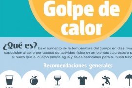 El Ministerio de Salud; Desarrollo Social y Deportes, ante las elevadas temperaturas estivales, brinda a la población algunas las recomendaciones, ya que las altas temperaturas pueden afectar la salud de todas las personas. ¿Qué son el agotamiento por calor y el golpe de calor? Son trastornos ocasionados por el aumento de la temperatura del cuerpo como consecuencia de la exposición prolongada al calor y la humedad o el esfuerzo físico intenso (ejercicios) en altas temperaturas. En estas situaciones, el cuerpo tiene dificultades para regular su temperatura. Se produce un agotamiento del mecanismo natural del sudor y hay desajuste del centro cerebral que controla la temperatura corporal. Si esto sucede, se produce el agotamiento por calor y, de persistir las circunstancias, el golpe de calor. El golpe de calor es una forma grave de lesión por calor, cuando la temperatura del cuerpo alcanza los 40 grados o más. ¿Cuáles son los síntomas? Es importante estar alerta a los síntomas y se debe consultar al médico y tomar conductas activas. El agotamiento por calor es un estadio previo al golpe de calor; hay que reconocerlo para prevenir una situación más grave: –Sudoración excesiva. –En los bebés, puede verse la piel muy irritada por el sudor en el cuello, pecho, axilas, pliegues del codo y la zona del pañal. –Piel pálida y fresca. –Sensación de calor sofocante. –Sed intensa y sequedad en la boca. –Calambres musculares. –Agotamiento, cansancio o debilidad. –Dolores de estómago, inapetencia, náuseas o vómitos. –Dolores de cabeza. –Irritabilidad. Llanto inconsolable en los más pequeños. –Mareos o desmayo Golpe de calor, situación muy grave: –Temperatura del cuerpo 39° 40° o mayor, medida en la axila. –Piel roja caliente y seca: se agota la transpiración. –Respiración y frecuencia cardíaca acelerada. –Dolor palpitante de cabeza. –Alteración del estado mental y del comportamiento, como vértigos, mareos desorientación, delirios, confusión o pérdida de conocimiento. –Convulsiones ¿Quiénes son los más vulnerables? –Los que tienen mayor riesgo son los abuelos mayores y los más chicos. –Los menores de 5 años y más aún los menores de 1 año. –Los niños con enfermedades crónicas, que pueden ser cardíacas, renales, mentales o neurológicas, entre otras. –Los niños con fiebre por otra causa o diarrea. –Los niños obesos o desnutridos –Los que tienen la piel quemada por el sol. –Las personas que abusan de bebidas con alcohol y drogas. ¿Cómo prevenirlo? Cuidar la hidratación y la alimentación: –Dar el pecho a los lactantes más frecuente –Ofrecer a los niños abundante agua segura y jugos naturales durante todo el día. –No ofrecer bebidas con cafeína o con azúcar en exceso. –No ofrecer bebidas muy frías o calientes. –No ofrecer comidas pesadas. –Reducir la actividad física en los horarios de mayor calor. –Permanecer en lugares ventilados y frescos. –Vestirlos con ropa holgada, liviana, de algodón y colores claros o mejor desvestirlos. –Bañarlos y mojarles el cuerpo con frecuencia. –Proponer juegos tranquilos. –No exponer al sol entre las 10 y 16. –Mantenerlos en lugares bien ventilados, usar ventiladores o aire acondicionado (ya sea en casa o lugares públicos) cuando la temperatura ambiente es muy elevada. –Nunca permanezca con ellos dentro de un vehículo estacionado y cerrado. Para los jóvenes y adolescentes –No consumir bebidas con alcohol, ya que aumentan la temperatura corporal y las pérdidas de líquido. No es conveniente tomar cerveza ante la sed y el calor. –Evitar esfuerzos físicos o actividades deportivas exigentes. –Sentarse y descansar cuando sientan mareos o fatiga. –Recordar las recomendaciones generales sobre hidratación, alimentación y refrescar el cuerpo. ¿Cómo debemos actuar si ocurre? –Ofrecer agua fresca y agua con media cucharadita de sal por litro. –Dar a los lactantes el pecho más frecuentemente. –Trasladarlo a un lugar fresco y ventilado, si es posible con aire acondicionado. –Desvestirlo (exponer el cuerpo al fresco). –Ducharlo o mojar todo el cuerpo con agua fresca. –Que esté quieto y descanse. –Consultar a su pediatra o a un centro de salud ¿Qué hacer ante un golpe de calor? Se trata de un cuadro muy grave y es necesario: –Llamar inmediatamente a un servicio de emergencia o ir con urgencia hasta el centro de salud. –Llevar al chico inmediatamente a un lugar fresco y ventilado, si es posible, con aire acondicionado frío. –Quitarle la ropa y enfriarlo rápidamente mojando con agua fría todo el cuerpo. –Darle de beber agua, si está consciente. Qué no hacer –No se deben administrar medicamentos antifebriles. –No se debe friccionar la piel con alcohol, porque causa intoxicación.