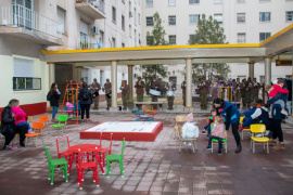 En el marco del Día Nacional de los Jardines Infantiles y de la Maestra Jardinera, la Ciudad reinauguró el Jardín Municipal Juana Azurduy. El acto se desarrolló este jueves por la mañana, luego del trabajo conjunto de la Dirección de Educación, el Ejército, la jefatura del jardín y docentes del lugar. Con calesitas, toboganes, columpios, hamacas, mesas y sillas donados por la Municipalidad, el patio del jardín se transformó en una plaza de juegos. Además, se refaccionó el jardín con pintura y sus espacios para lactancia, sala de deambuladores, comedor, sala de sueño, baños adaptados, colchoncitos y otros lugares y elementos. Para la presentación del lugar se acercaron la directora de Educación de la Ciudad, Elvira Stone, la subsecretaria de Inclusión y Desarrollo Humano, Ana Urrutia, el presidente del Honorable Concejo Deliberante, Horacio Migliozzi, el director de Recursos Humanos, Alfredo Guzzo, la directora del jardín, Natalia Dal Dosso, maestras jardineras, mamás, papás, pequeños y pequeñas e integrantes del ejército. Feliz, la directora del jardín manifestó: “Agradecemos a nuestro intendente, Ulpiano Suarez, por acompañarnos con su gestión de políticas educativas de la Ciudad, especialmente las destinadas a la primera infancia y a la protección de derechos de niños y niñas en sus primeros años de vida. También agradecemos al equipo del ejército por el gran trabajo realizado, con el que atendieron nuestras demandas en cuanto a reparaciones y reacondicionamiento edilicio”. Seguidamente, la banda del ejército entonó, con bombos, platillos y trompetas, canciones infantiles, marchas nacionales y desfiló al compás de la música. Además, niñas y niños que asisten al jardín probaron los nuevos juegos y se sentaron en las mesas de la plaza. Al culminar el acto, los funcionarios fueron invitados a observar las refacciones sobre el jardín y a conocer las capacitaciones y diplomaturas que las maestras tomaron para la enseñanza y atención de los menores, mientras los pequeños y pequeñas disfrutaban de una función de títeres con sus padres.
