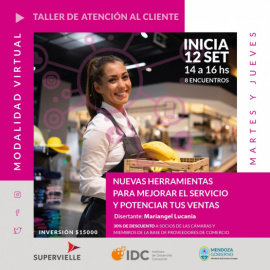 El Ministerio de Economía y Energía, a través del Instituto de Desarrollo Comercial (IDC), invita a participar en un nuevo espacio de capacitación virtual orientado a pequeños y medianos comerciantes de toda la provincia. El taller Nuevas herramientas para mejorar el servicio y potenciar las ventas se llevará a cabo en ocho encuentros virtuales, a través de la plataforma de conferencias Google Meet, martes y jueves de 14 a 16. La capacitación estará a cargo de Mariangel Lucania, especialista en la temática, quien brindará el detalle de los contenidos especialmente adaptados a las necesidades expresadas desde el sector. Esta nueva propuesta se pondrá en marcha el martes 12 de septiembre y todas las personas interesadas en formar parte deben realizar una inversión de 15 mil pesos. Un dato, no menor, tiene que ver con que si el participante acredita estar vinculado a una cámara que lo represente o bien es parte de la base de proveedores para comercio del IDC, podrá acceder a un descuento automático de 30% del valor. Sobre este último punto, desde el IDC detallaron: “Si el comerciante acredita estar asociados a la cámara de comercio de su departamento o bien es parte de nuestra base de proveedores para comercios de la provincia, solo deberá abonar $10.500”. “Desde nuestra institución hemos elaborado una nutrida agenda de capacitaciones para todo el año. Se puede consultar en nuestro portal web. Ha sido pensado y diagramado en base a las necesidades expresadas desde el sector comercial mendocino”, remarcaron. Temario Introducción a las ventas: Entender la venta y sus procesos. Técnicas de persuasión y negociación. Comunicación asertiva. Etiqueta telefónica. Gestión de clientes: Psicología del consumidor. Identificación y segmentación de clientes. Políticas de atención al cliente. Servicio orientado a la fidelización. Dirección de equipos y manejo de herramientas: Liderazgo. Gestión y motivación de equipos de venta. Concepto y fines del trabajo en equipo. La tecnología como herramienta. Informes e inscripciones Las personas interesadas en participar del este nuevo taller virtual deben llenar el siguiente formulario digital.