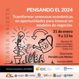 El Ministerio de Producción, a través del Instituto de Desarrollo Comercial (IDC), abre las inscripciones para participar de la primera conferencia abierta dirigida a pequeños y medianos comerciantes y emprendedores mendocinos. “Pensando el 2024. Transformar amenazas económicas en oportunidades para innovar en modelos de negocios” será el primer espacio de capacitación impulsado desde la cartera a cargo del ministro Rodolfo Vargas Arizu. Se llevará a cabo el miércoles 31 de enero, de 9 a 13, en el Mendoza TIC Parque Tecnológico de Godoy Cruz (Rafael Cubillos 2056). El espacio estará a cargo de un especialista en la temática. Se trata de Heraldo Laly Muñoz, quien viene formando parte de los distintos espacios de capacitación puestos a disposición de las pymes locales de la mano del IDC. “El taller tiene como objetivo reflexionar sobre los desafíos y las oportunidades que presenta el escenario económico de la Argentina para el 2024, y cómo se pueden aprovechar para innovar en los modelos de negocio. Para ello, se partirá de un análisis de las proyecciones de la economía argentina según la mirada de algunos especialistas”, comentó Muñoz. En este sentido, amplió: “Además, se realizará un análisis FODA y un Canvas Business para diseñar modelos de negocio a partir de las oportunidades que trae el nuevo contexto económico. La charla será participativa y se invitará a los asistentes a compartir sus ideas, experiencias y propuestas”. Consultadas las autoridades del IDC sobre si la actividad contará con un costo para los asistentes, comentaron: “En esta oportunidad hemos puesto un valor de inversión de $2.000 por participante. Sobre los contenidos Introducción: Motivación para el optimismo creativo y la innovación en los modelos de negocio. Desarrollo: Análisis de las proyecciones de la economía argentina para el 2024 según la mirada de algunos especialistas. Identificación de los principales problemas y oportunidades que se presentan para los emprendedores y las empresas. Realización de un análisis FODA y un Canvas Business para diseñar modelos de negocio a partir de las oportunidades que trae el nuevo contexto económico. Presentación y discusión de algunos ejemplos de modelos de negocio innovadores y exitosos en contexto de crisis y cambios. Conclusión: Reflexión sobre la importancia del optimismo creativo y la innovación en los modelos de negocio para adaptarse al cambio y generar valor. Inscripciones Las personas interesadas en formar parte de este primer encuentro de capacitación deben inscribirse a través del siguiente enlace: https://acortar.link/jyfOs2
