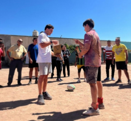 Autoridades del Servicio Penitenciario de Mendoza, junto con responsables y voluntarios del programa Rugby e Inclusión, y 24 jugadores de Los Caciques, recibieron a uno de los principales referentes de este deporte para continuar impulsando los beneficios que generan este tipo de actividades tendientes no solo a mejorar la salud sino también para la incorporación de valores como la disciplina y el trabajo en equipo. Desde el Área de Deportes del Complejo Penitenciario Boulogne Sur Mer destacaron que estos encuentros con deportistas destacados y reconocidos permiten que las personas privadas de libertad puedan hablar con ellos para mejorar técnicas y tácticas, y demostrarles los valores y el compromiso con el que cuentan para seguir creciendo.   Es importante destacar que este deporte llegó a los complejos carcelarios de nuestra provincia en 2016, inspirado en el modelo implementado en Buenos Aires, con el equipo de Los Espartanos, quienes lograron bajar significativamente la reiterancia y la conflictividad intramuros mediante la práctica deportiva. “Verlos a ustedes acá, ver cómo empiezan a incorporar los valores de este deporte: cómo se respetan, cómo se entrenan, como se superan día a día. Eso creo que es muy importante, que es el sendero por el que tienen que seguir, y lo más lindo de la vida es que siempre hay segundas oportunidades muchachos. Vale el perdón, vale disculparse, vale volver a arrancar. Los felicito a todos y ojalá nos veamos pronto”, expresó Isgró. Para el final del encuentro, el capitán de Los Caciques expuso unas palabras e hizo entrega de presentes, en muestra de agradecimiento y apoyo de todas las familias de cada uno de los jugadores que apuestan diariamente a este proyecto. En Mendoza, los integrantes de este equipo son personas privadas de libertad alojadas en un mismo módulo. Allí se apuesta a la buena convivencia, la cooperación y el acompañamiento espiritual para favorecer el proceso de resocialización.