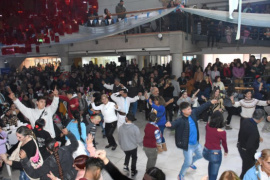 El Espacio Cultural Julio Le Parc se vistió de celeste y blanco este sábado para celebrar los 214 años de la Revolución de Mayo. La Gran Peña del 25 de Mayo fue organizada por la Subsecretaría de Cultura -dependiente del Ministerio de Educación, Cultura, Infancias y DGE- y la Municipalidad de Guaymallén. El canto cuyano y las danzas folclóricas tradicionales fueron protagonistas de la jornada patria. Entre los funcionarios, participaron el ministro de Educación, Cultura, Infancias y DGE, Tadeo García Zalazar; el intendente de Guaymallén, Marcos Calvente, y el subsecretario de Cultura, Diego Gareca. Además de recorrer el espacio, visitar a los artesanos y recorrer los foodtrucks, participaron en la peña almorzando en uno de mesones instalados en el hall principal del Le Parc. También hasta el lugar llegaron la reina y virreina nacionales de la Vendimia, Agostina Saua y Rocío Neila.  Desde las 12, momento de la apertura de puertas, fue intenso el movimiento que tuvo el espacio, que llegó a estar repleto a partir de las 14 y hasta las 18, en el cierre de la jornada. Ni la lluvia ni el frío amilanaron las ganas de los cientos de mendocinos que se acercaron hasta el lugar, que lució impecable y llenísimo, y colmaron los cien mesones que fueron distribuidos en todo el lugar y se ubicaron de pie en cuanto espacio libre quedara. En el escenario El Dúo Nuevo Cuyo, conformado por los hermanos Guillermo y Gustavo Micieli, es un destacado exponente del folclore cuyano y fueron los encargados de abrir la jornada, a fuerza de tonadas muy aplaudidas. Seguidamente fue el turno de Marcelino Azaguate, que ofreció un set lleno de armonía y hermosas melodías que fueron recibidas con beneplácito. El calor fue subiendo en el Espacio Cultural Julio Le Parc cuando Las Hermanas Abraham -grupo formado por las hermanas Betiana y Marianela Abraham- hicieron levantar a todos de sus asientos con esas armonías vocales delicadas y una elección acertada de canciones. La gran fiesta llegó con Manyines de Cuyo, un grupo que terminó siendo la gran revelación de la jornada a fuerza de canciones pegadizas y una enorme energía desplegada en el escenario. El grupo está formado por Julián Manrique El Manyín, docente universitario, músico cantautor, compositor, guitarrista, charanguista, oriundo de San Juan; Manuel Yllanes Curandero, flautista, vientista, estudiante avanzado en el Profesorado en Música Popular Latinoamericana y oriundo de Mendoza; Gastón Orona Chañar, baterista, percusionista, músico multi instrumentista egresado de la UNCuyo, oriundo de San Luis, y Emiliano Leyac Samurái Cuyano, bajista, multi-instrumentista, productor musical egresado en la Universidad Nacional de San Luis y oriundo de Mendoza. El gran final quedó para Los Chimeno, que lograron que el público -el Le Parc seguía repleto en ese momento- no se sentara nunca y acompañara sus canciones con bailes y palmas. Ricardo y Juan Pío Chimeno, acompañados siempre por Pablo Calderón, sonando de manera súper profesional y comprometidos con la música folclórica argentina. Una gran ovación se llevaron el Ballet Municipal de Guaymallén y la Escuela Municipal de Danzas Querencia Criolla, que mostraron su talento con sus bailes y sus vestuarios. Los servicios Párrafo aparte fue lo que ocurrió en la playa de estacionamiento del Espacio Cultural Julio Le Parc, donde los puestos con comidas típicas se vieron repletos hasta llegar a agotar sus víveres. Algo similar ocurrió con la feria de artesanos, que se ubicó en la ochava Oeste del Le Parc. En síntesis, se vivió una jornada espectacular, donde el público, las canciones y las comidas tradicionales fueron las grandes protagonistas.